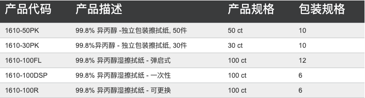 方便,低-產(chǎn)品毛羽alchohol擦拭與99.8%的純異丙醇pre-飽和。可供選擇的4種包裝:
